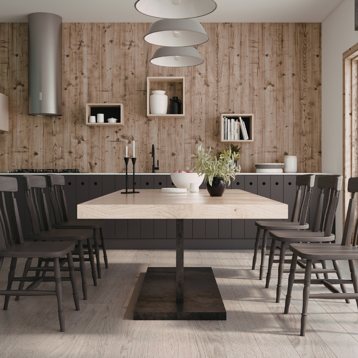 Behind dining tables, kitchen peninsulas, or bar areas, LVP accent panels create inviting spaces perfect for hosting family and friends.